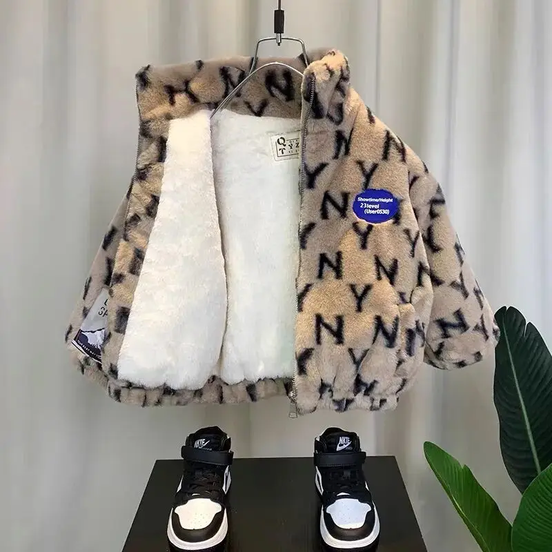 Autumn/Winter Children's Jacket New Boys' and Girls' Thick Cotton Jacket with Velvet and Clip on Cotton Top