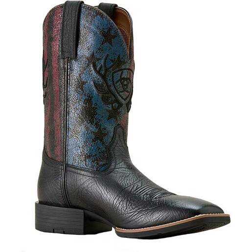 Ariat Men's Sport Liberty Antler Wide Square Toe Western Boot - Black Hippo Print/Mdinight Flag 9.5