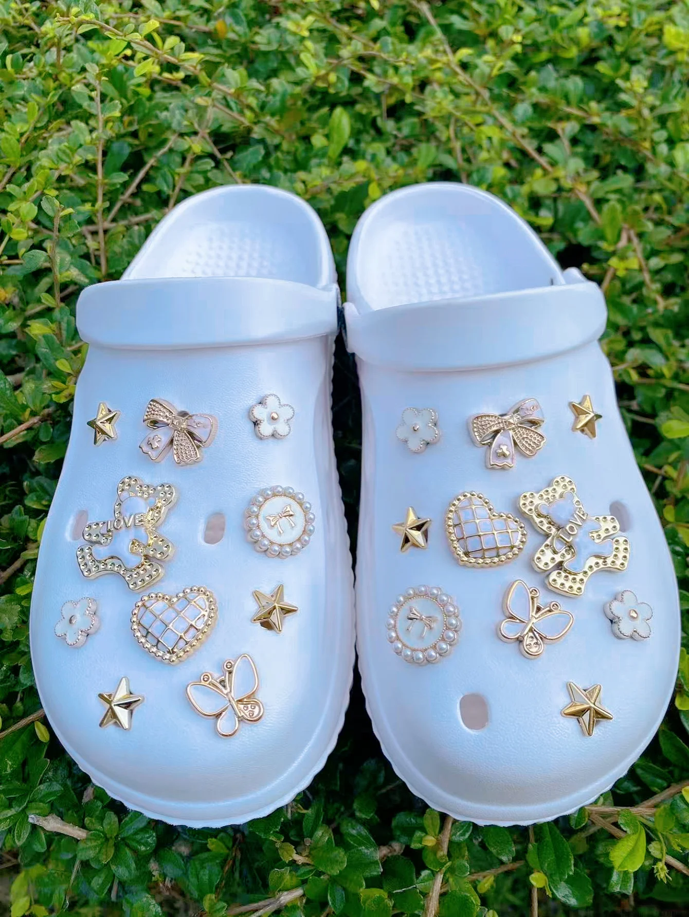 20 DIY shoe buckle decorations such as white and gold bears, hearts, bows, stars, and butterflies, as well as multi-functional s