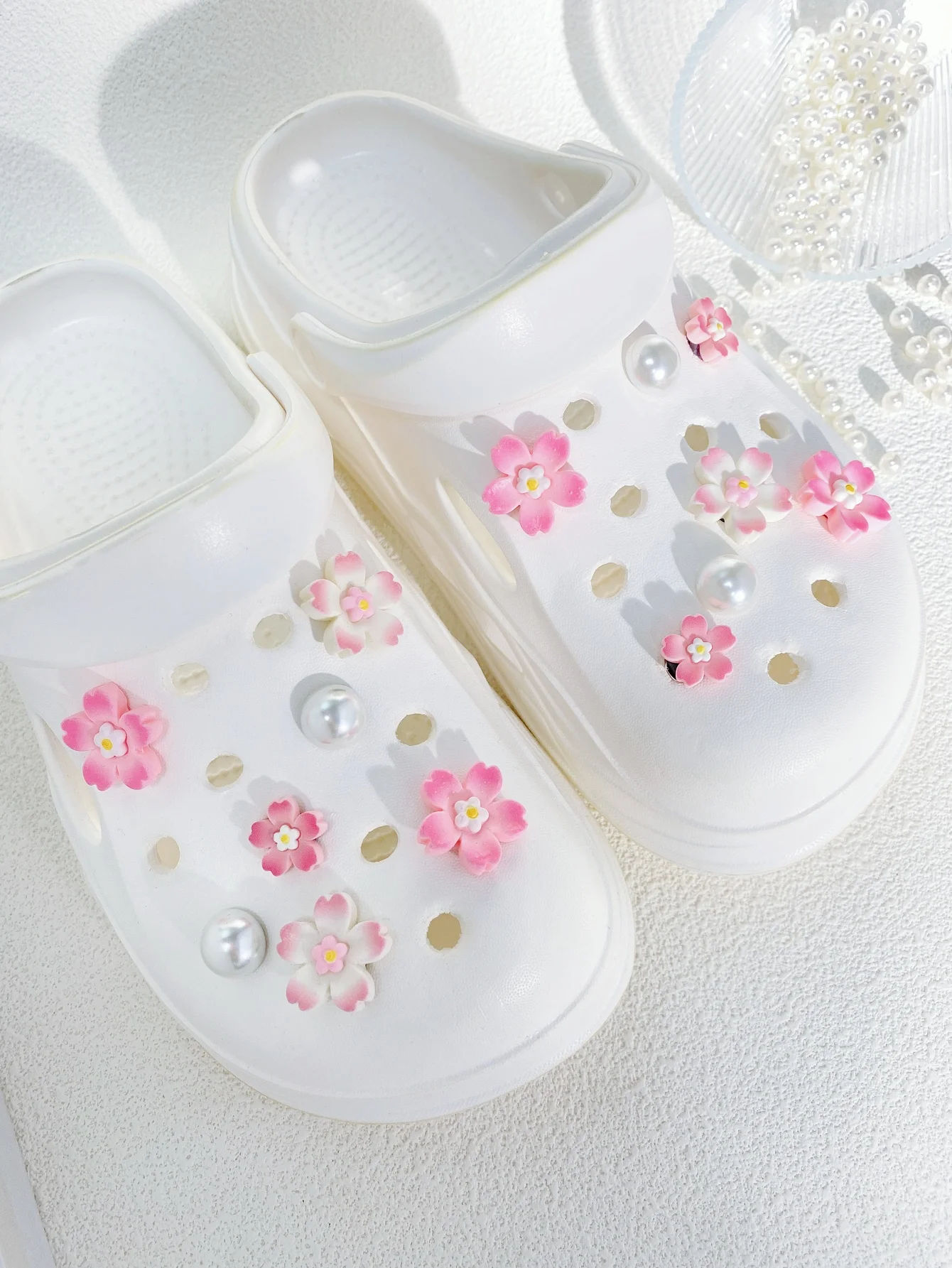 14-pcs hole-in-the-hole shoe decorative buckle detachable artificial temperament pearl three-dimensional flowers cute pink acc