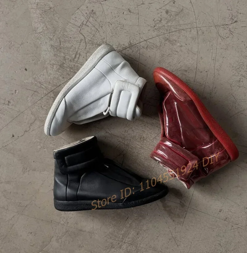 Leather High Top Sneakers with Strap Fastening - Space Party Trainers Man Boots Outdoor Activity Daily Casual Shoes Zapatillas