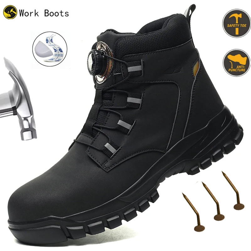 Rotating Button Work Shoes for Men Anti Puncture Protective Boots Sneakers Waterproof Work Safety Shoes Non Slip Steel Toe shoes