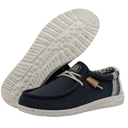 Hey Dude Men's Wally Linen Natural Casual Shoes - Navy 9