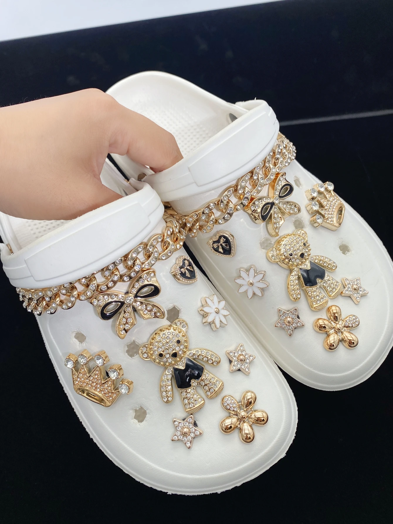 18 golden (bear, crown, bow, heart, five-pointed star) shoe buckle DIY decorations, multi-functional shoe clip accessories for w