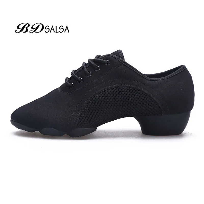 Latin Dance Shoes Oxford Cloth Square Latin Shoes Two Soft Anti-slip Low-end Ballroom Shoe BDSALSA BDJW-1 Authentic Heel 3 cm