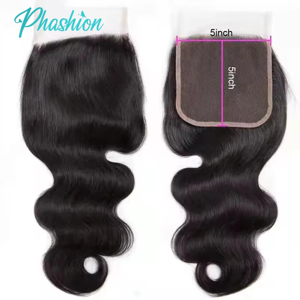 Phashion 26 Inch 4x4 5X5 Body Wave Lace Closure Only Pre Plucked Swiss Transparent 100 Remy Human Hair For Black Women Full Soft