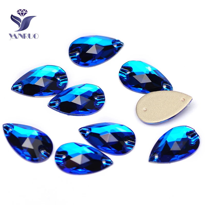 YANRUO 3230 All Sizes Capri Blue Drop Sew On Strass Crystal Stones Flatback Sewing Rhinestones For Needlework