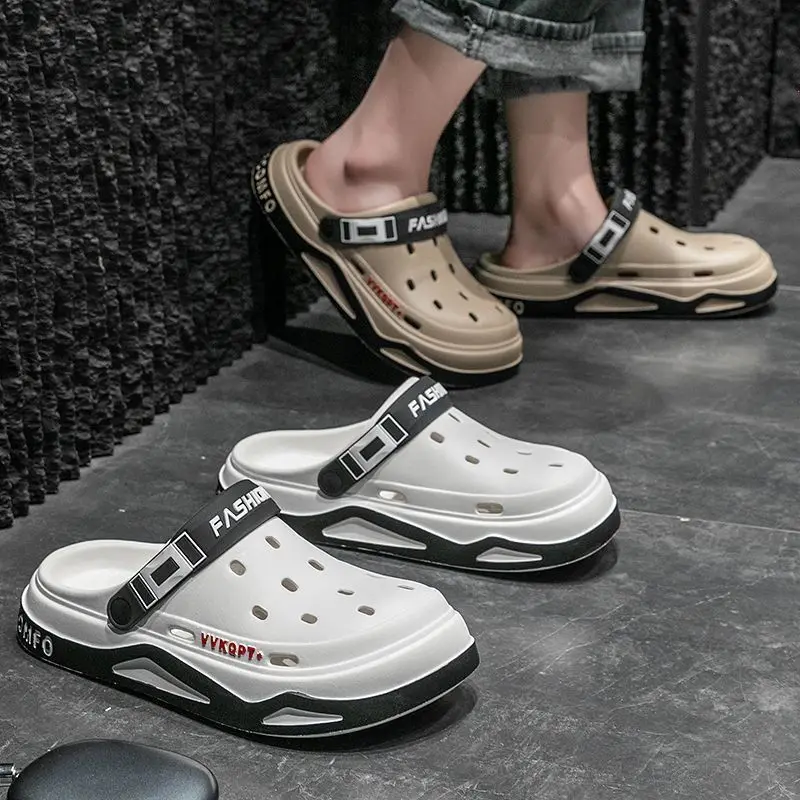 A Pair of Men's New Summer Clogs, Wear-Resistant, Non-Slip, Soft-Soled, Comfortable Beach Shoes, Outdoor Sports and Leisure Baotou Sandals and Slippers