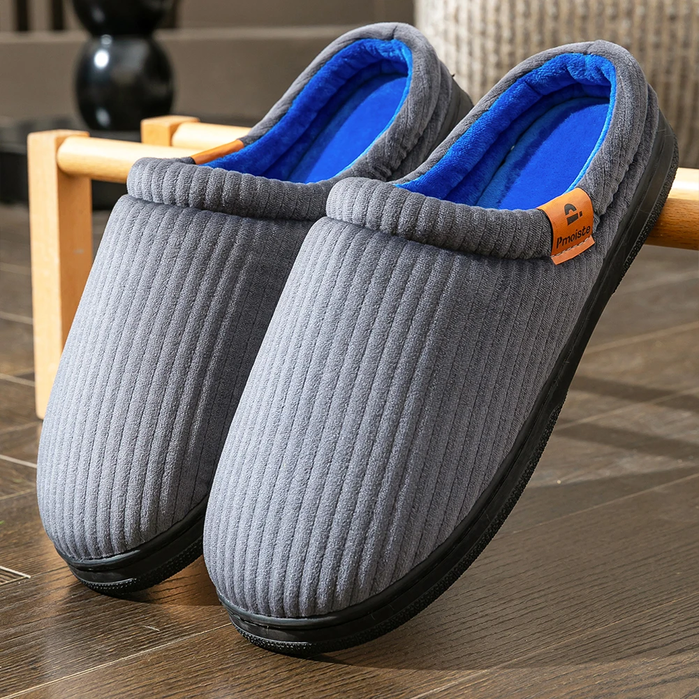 Pmoiste Stripe Corduroy House Shoes Men Warm Soft TPR Cushion Memory Foam Home Slippers Slip On Winter Indoor High-quality