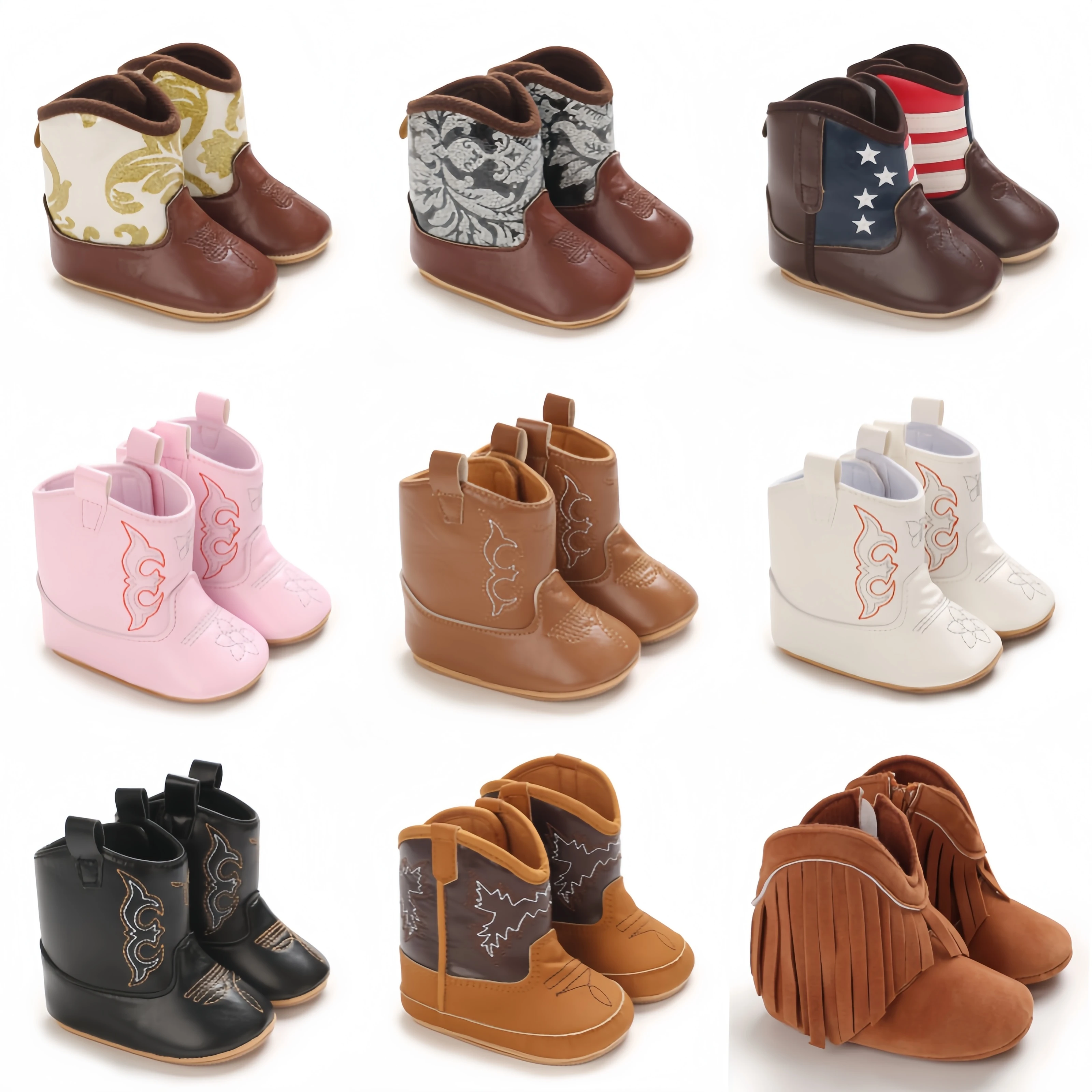 Fashionable and popular baby shoes Western denim midsole boots autumn and winter warm and anti slip casual walking shoes
