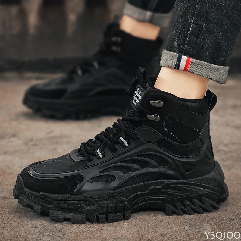 Men's breathable high top shoes for spring autumn retro outdoor anti slip wear-resistant simple comfortable casual boots