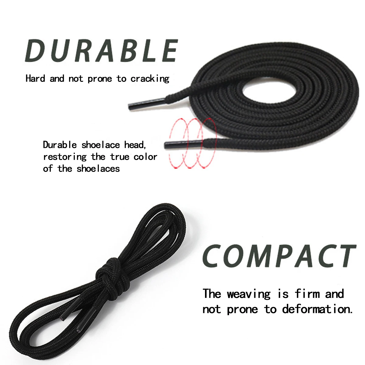 Black Classic Round Shoelaces Durable Polyester Solid Shoe laces Boot Laces for shoes Sneaker Shoelace