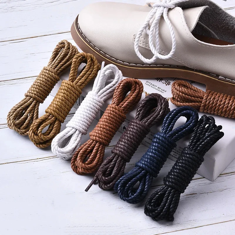 Leather Shoes Laces Round Coarse Cotton Shoelaces Rope Black and White Brown Waxed British Casual Boots Ankle Shoes Laces 1 Pair