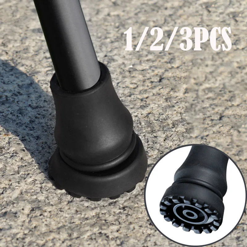 Rubber Pad Cap Non-Slip Walking Stick Crutch Cane Bottom Pads Cover Protector Climbing Hiking Trekking Pole Tip Black 16/19/22mm