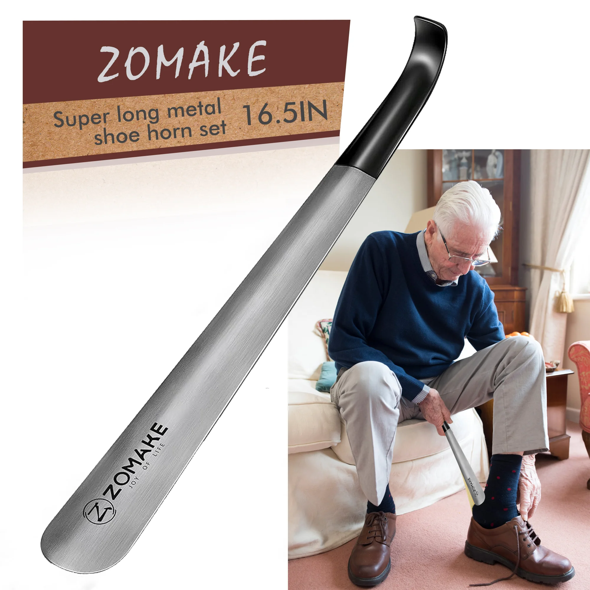 42CM Stainless Steel Shoe Horns for seniors Long Handle Home Professional Shoehorn flexible Metal Shoe Lifter shoe accessories