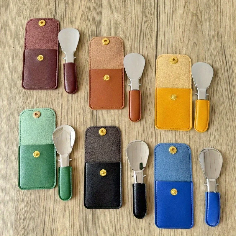 1pc stainless steel shoehorn with leather handle, travel shoehorn is easy to carry and easy to wear shoes.