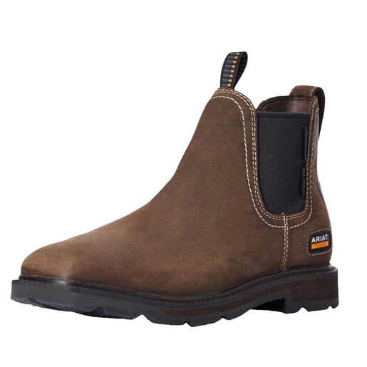 Ariat Groundbreaker Chelsea Wide Square Steel Toe Waterproof Work Boot - Dark Brown 8.5