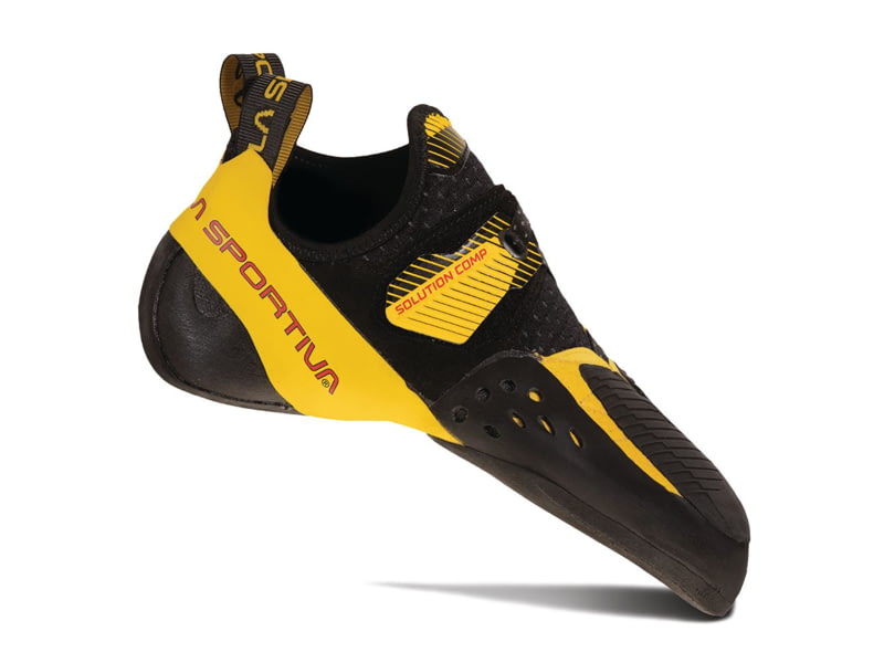 La Sportiva Solution Comp Climbing Shoes - Men's Black/Yellow 45.5 ZFCS018-K00Y00-45.5. With more rubber coverage on top of the toe and a more traditional tapered heel the Comp allows surgical precision on micro holds enables powerful toe hooks and...  Read more