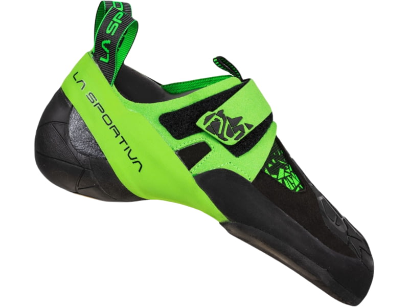 La Sportiva Skwama Vegan Climbing Shoes - Men's Black/Flash Green 44 ZFCS032-K00E24-44. Still ensuring precision and performance the Skwama Vegan features include the P3 rand designed to minimize stretch an S-Heel construction for secure heel hooks...  Read more