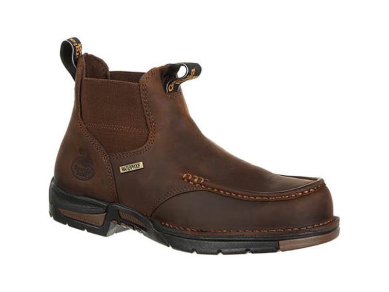Georgia Boot Athens Chelsea Waterproof 5 inch Work Boot - Men's Dark Brown 13 Wide GB00156-130W. This men's Chelsea boot's upper is made from a supple full-grain leather and also includes elastic twin gores. The twin gores make the boot easy to slip...  Read more