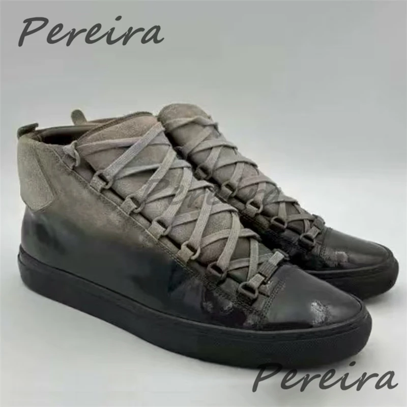 Street Style Men High-Top Sneakers Mixed Colors Genuine Leather Lace-Up Sports Shoes Outdoor Trendy Versatile Casual Board Shoes  Read more