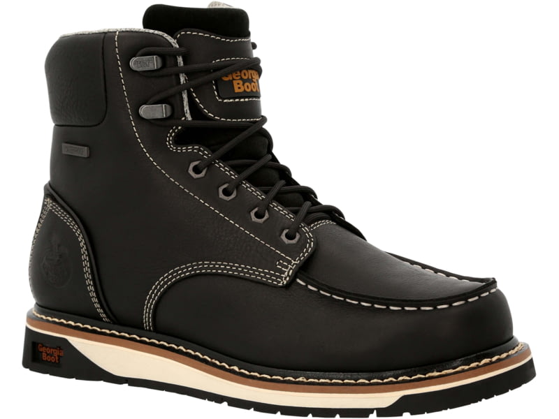 Georgia Boot AMP LT Wedge Waterproof Moc-Toe 6in Work Boot - Men's Medium Black 12 GB00475-120M. The upper is made from their premium barnyard proof SPR leather. Its resistant to many caustic alkali and potash as well as other barnyard acids. It's...  Read more