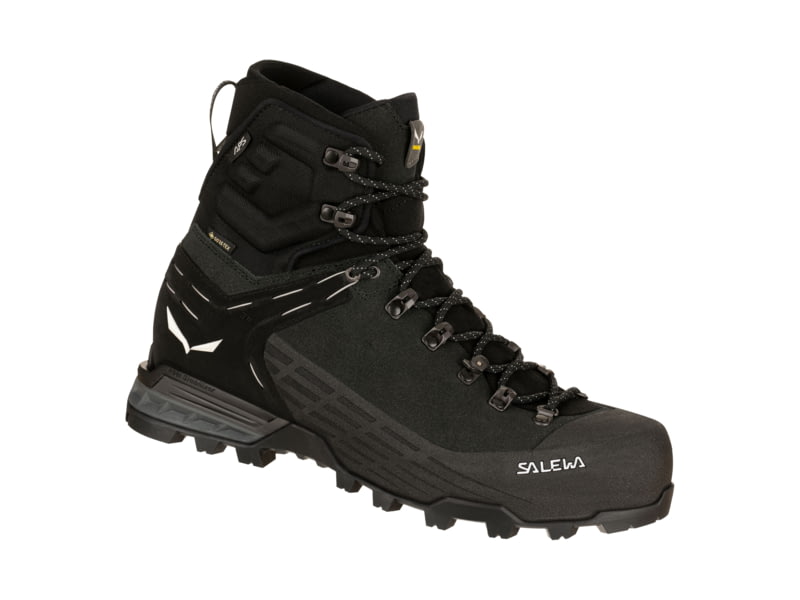 Salewa Ortles Ascent Mid GTX Shoes - Men's Black/Black 8.5 00-0000061408-971-8.5. 0-2.2mm Suede Leather 3F System with Steel Cables Nylon Protective TPU rand Insole Material: Crampon Compatible Stiff Nylon Fiberglass carbon loaded Midsole Material:...  Read more