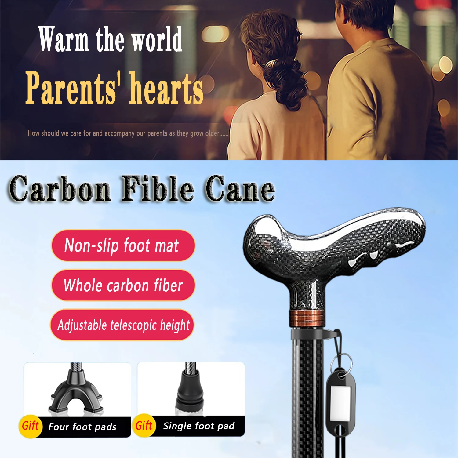 Carbon Fiber Telescopic Hiking Cane Anti-Slip Fall-Proof Adjustable Height Walking Stick for Assisted Hikin trekking pole