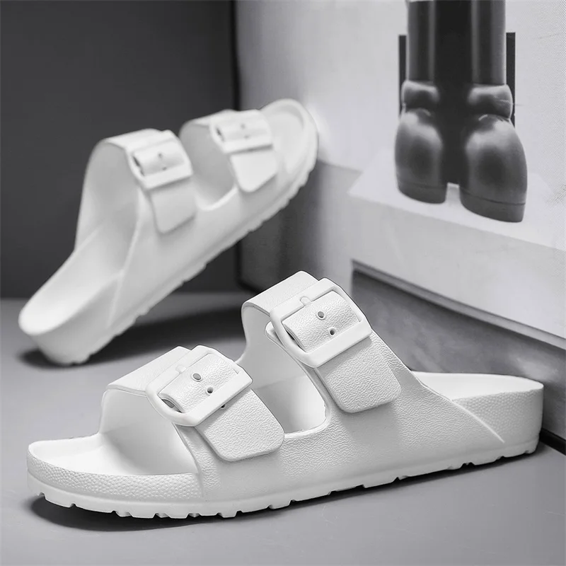 Summer Adjustable Soft Slippers for Men EVA Flat Cloud Slides Lightweight Non-slip Solid Color Beach Man Sandals Plus Size