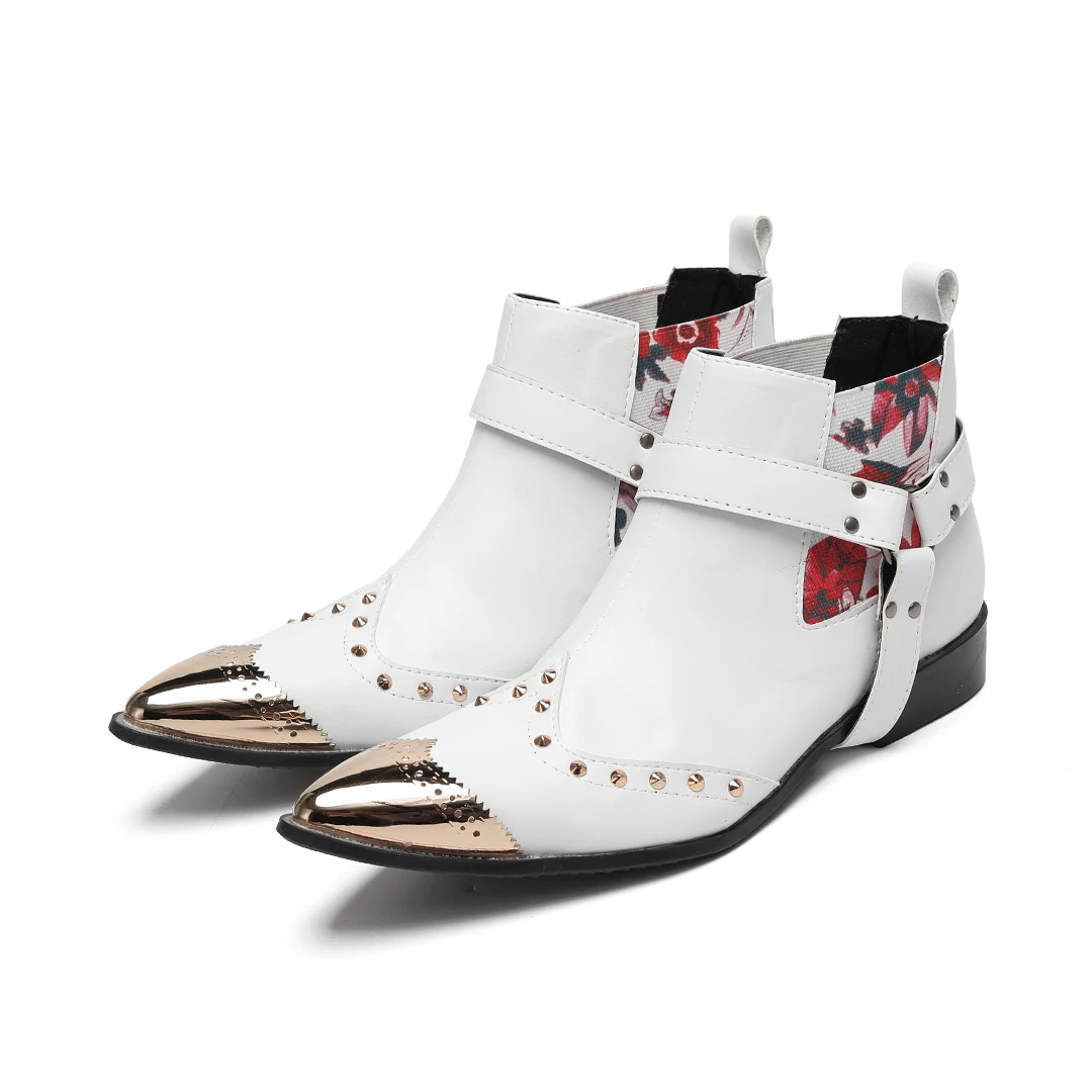 Botas Winter White Rivets Pointed Toe Genuine Leather Ankle Boots Male Formal Dress Shoes Men Zipper Motorcycle Short Boots