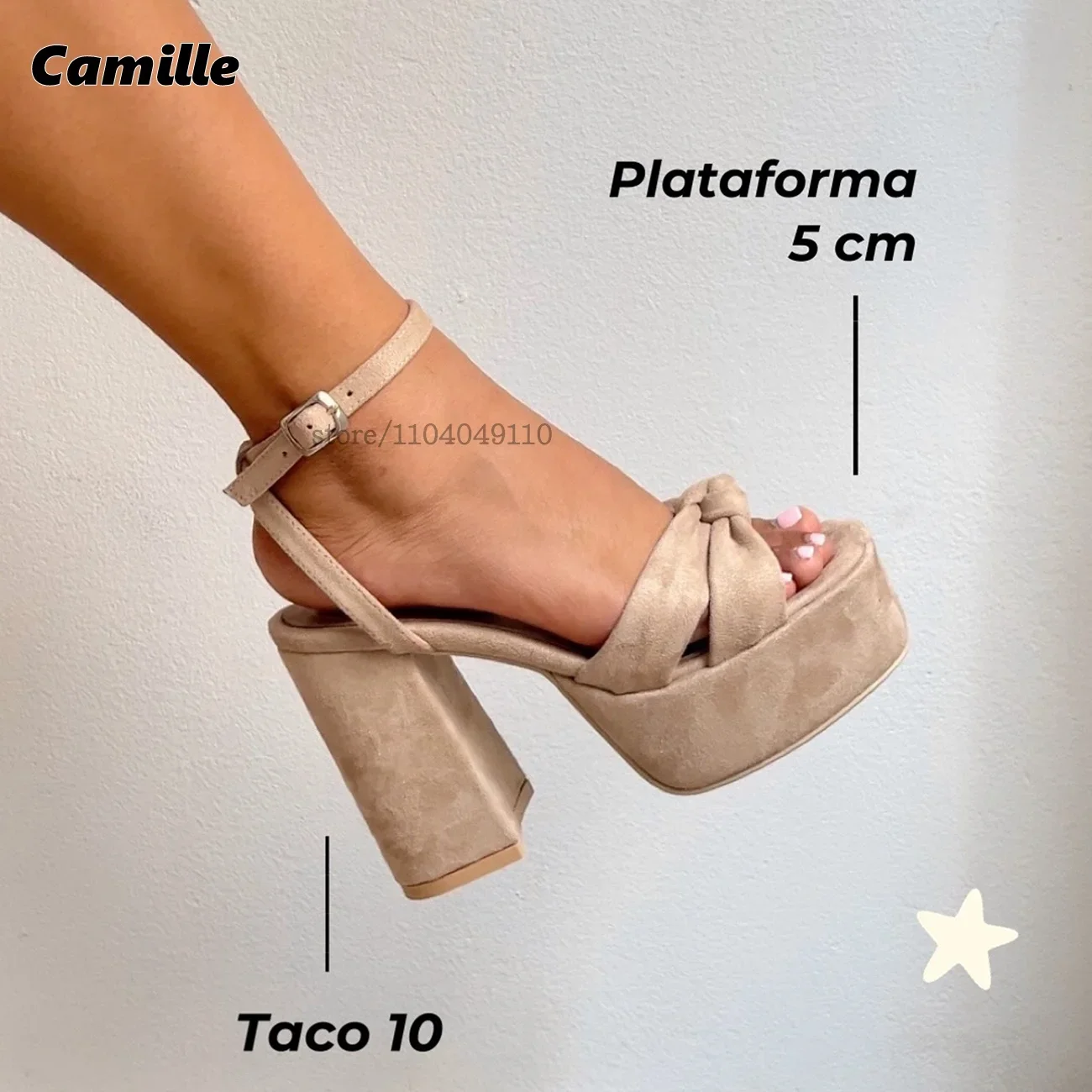 Genuine Leather Ankle Buckle Strap High Waterproof Sandals Peep Toe One Word Blet Sandals Mixed Color Chunky Heel Shallow Sandal
