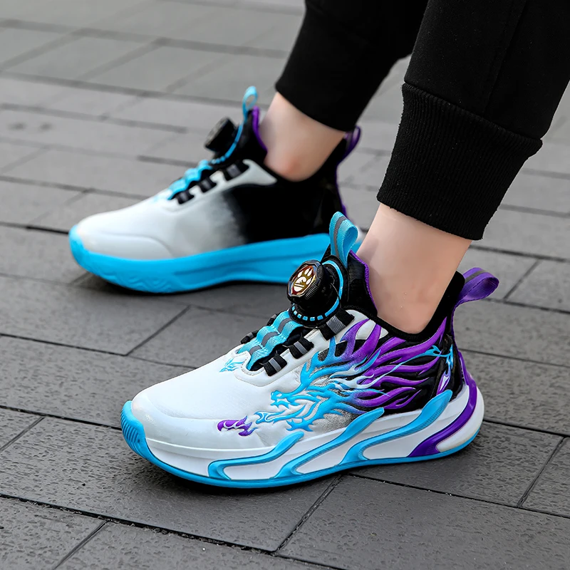 New waterproof leather-top rotary buckle children's sports casual shoes breathable running shoes for primary school students