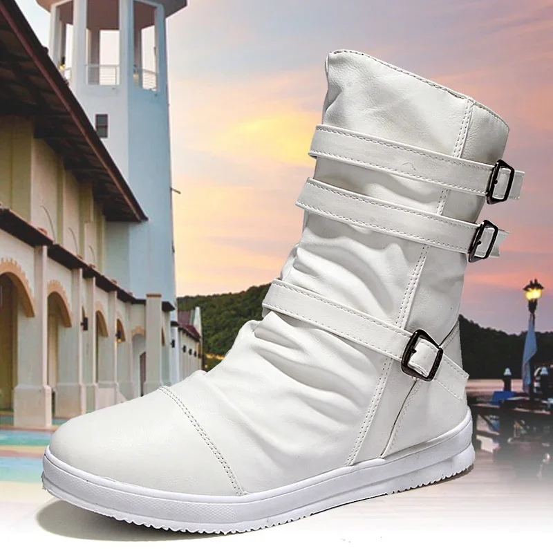Autumn and Winter Men's Boots Men's Shoes Zipper Leather Boots High-top Metal Buckle Short Boots Outdoor Casual shoes for men