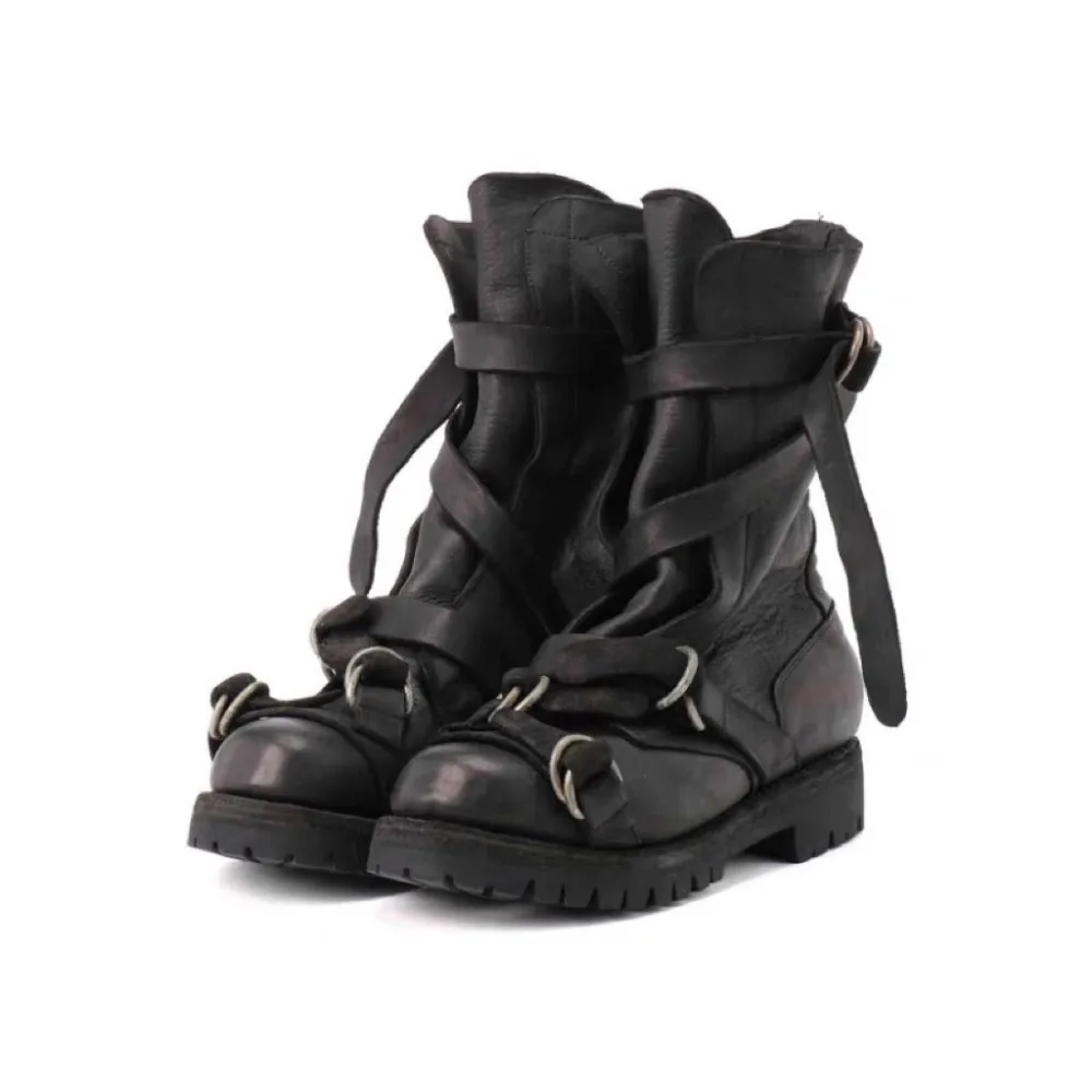 Men's Leather Motorcycle Boots Punk Retro Thick Soled Mid-Calf Knight Boots Black Soft Belt Buckle Strap High-top Moccasin Shoes  Read more