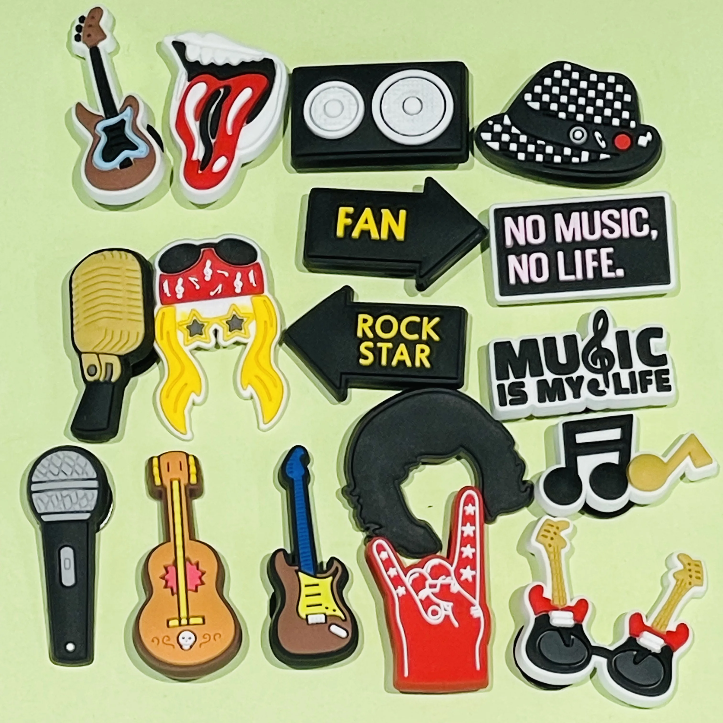1-17PCS PVC Shoe Charms Fit Wristbands Music Life Rock Star Hole Slipper Decoration Shoe Buckle Button Accessories Adult Gift