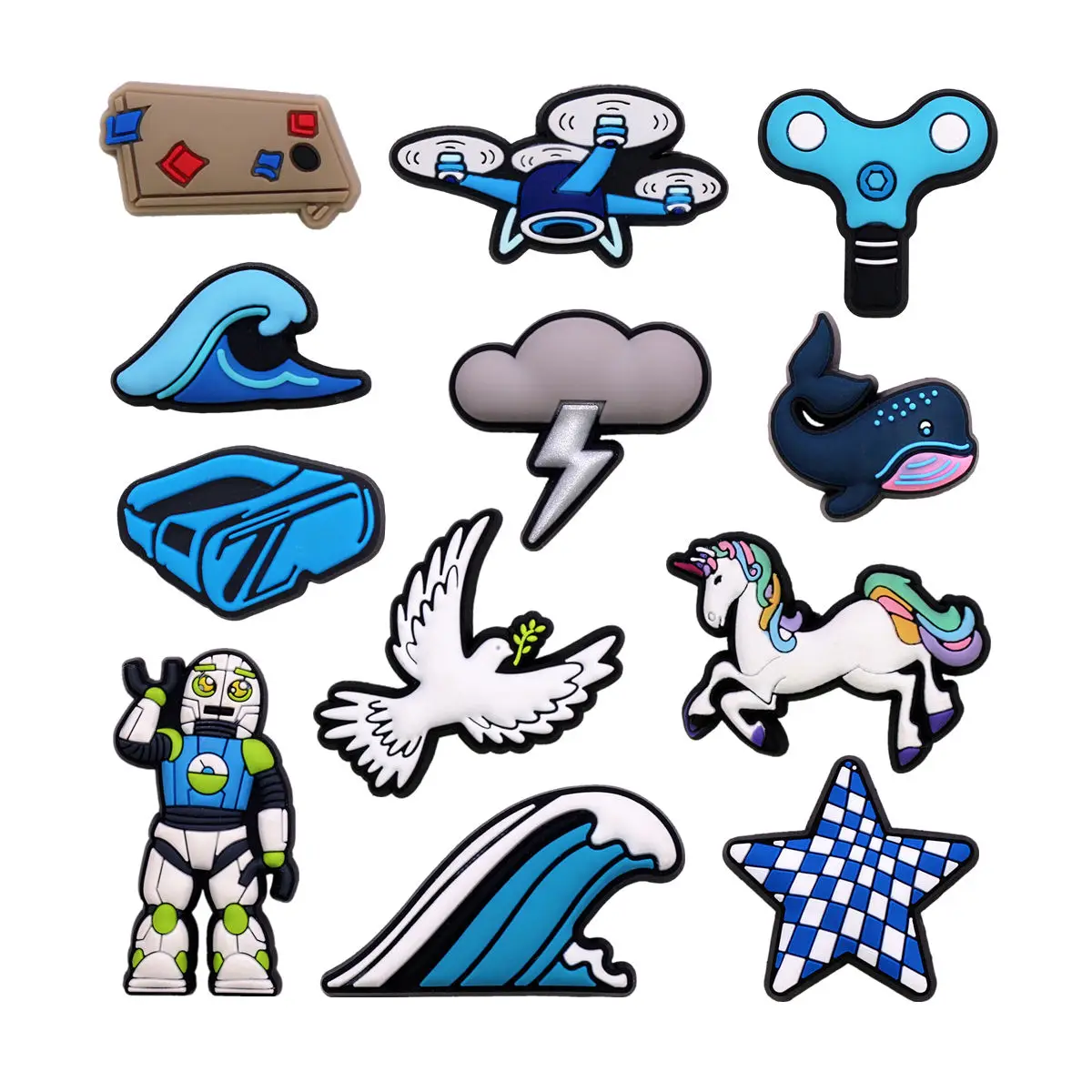 1 Pcs Original Lightning Waves Shoe Charm Decorations Pigeon Robot Drone Star Shape Sandal Upper Buckle Unicorn Clog Accessories  Read more