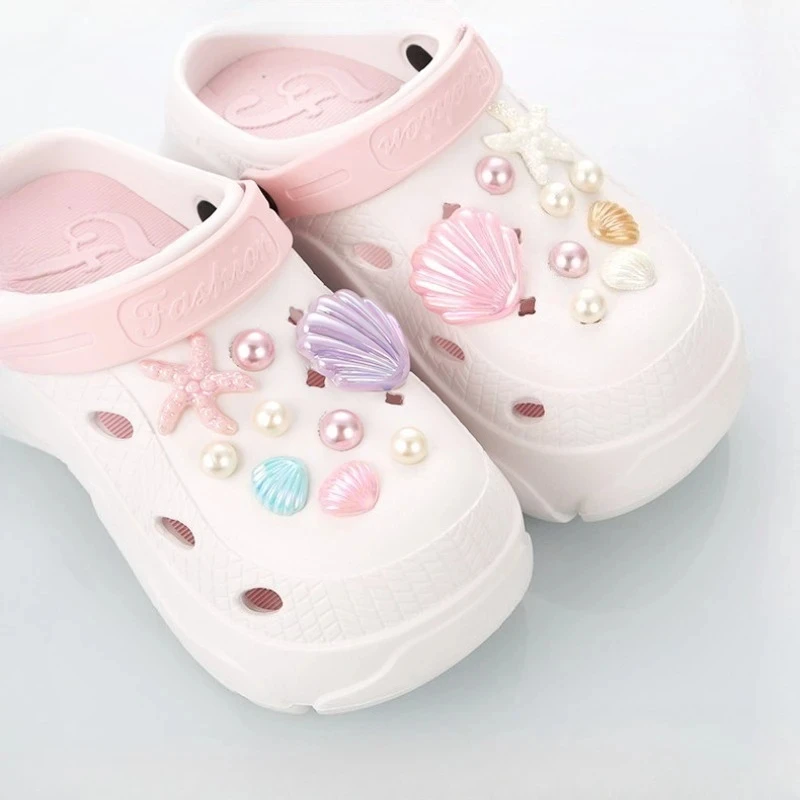DIY Summer Starfish Shell Set Shoe Charms Accessories for Clogs Slide Sandals Garden Shoe Decoration Buckle Beach Bag Pins Gifts