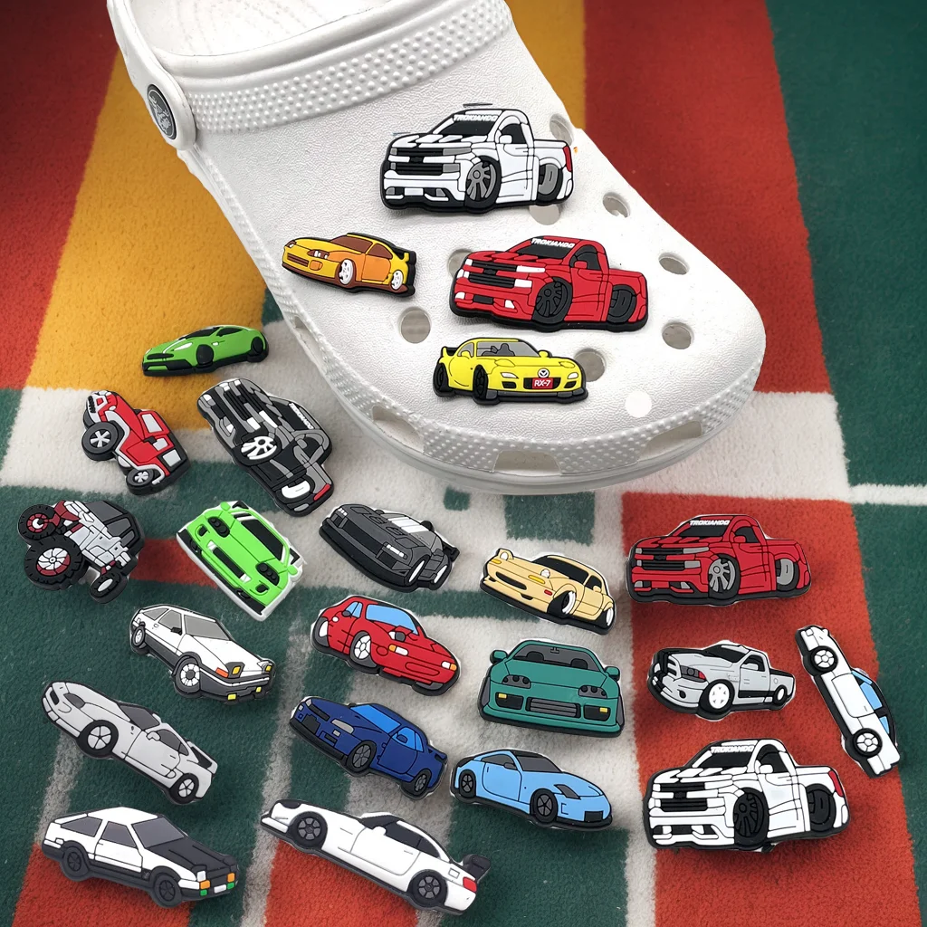 1-23PCS Car Series for CartoonShoe Charms Sandals Accessories Cool Car Shoe Buckle Decoration Beach Bag Accessories Gift