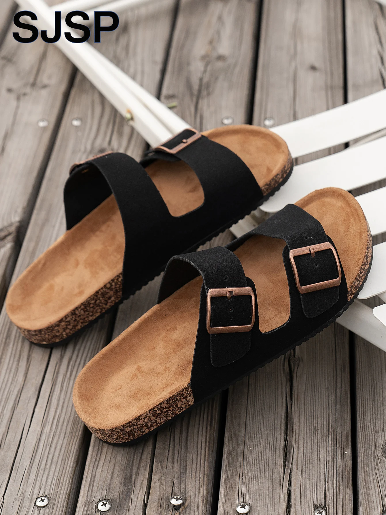 Men's Spring and Autumn Casual Simple Solid Color Pebbled Pu Upper Flat Buckle Cork Toe Slippers Indoor Outdoor Wearable Slip-On Beach Sandals  Read more