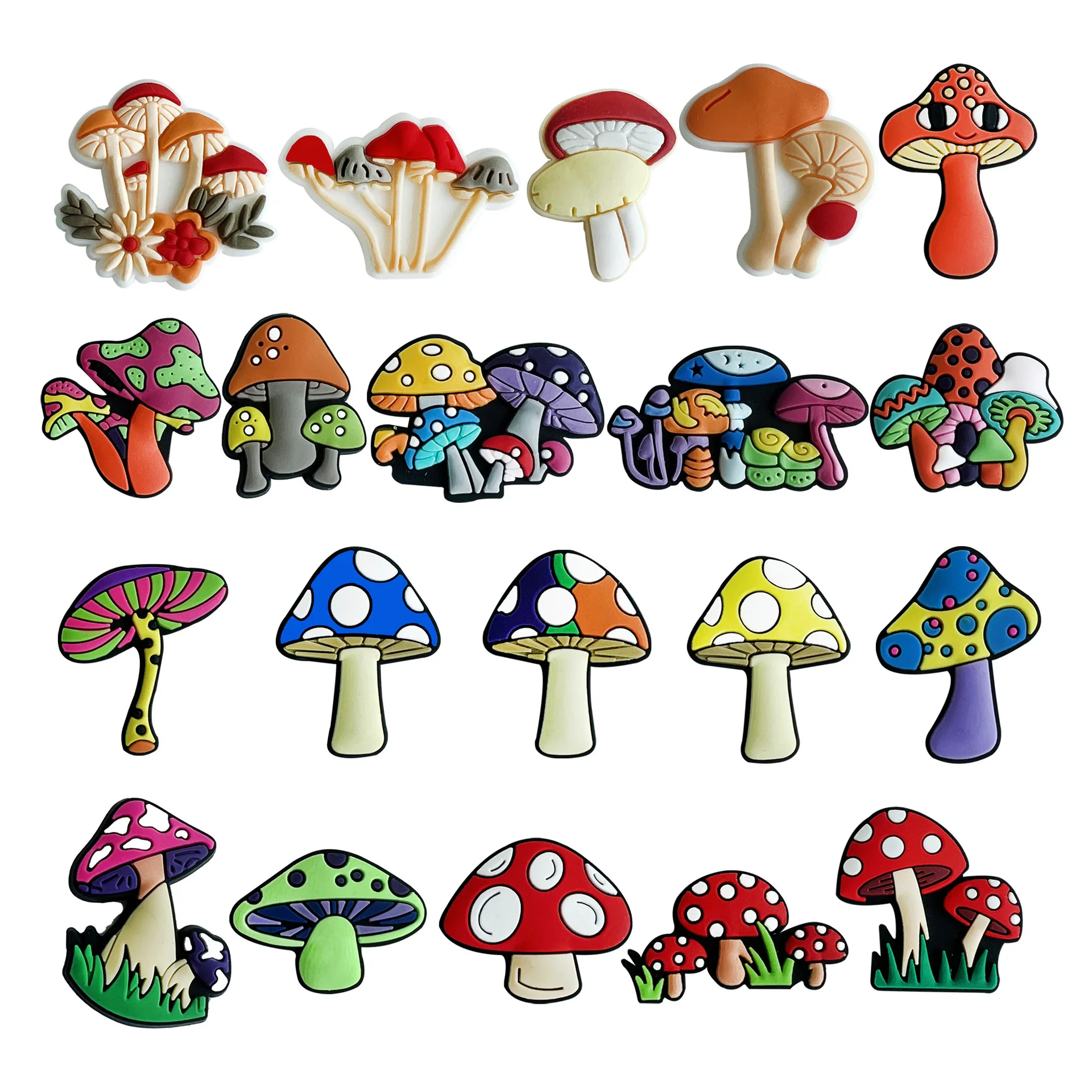 1-20pcs Cartoon Colorful Mushroom Series PVC Shoe Charms Bubble Slides Sandals Accessories Shoe Buckles Decoration Fit Kids Gift