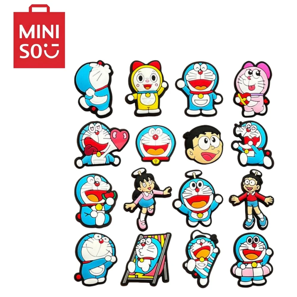 Miniso 1-16 Doraemon shoes, charming clown decorations, PVC shoe accessories, buckle garden sandals, charming gifts