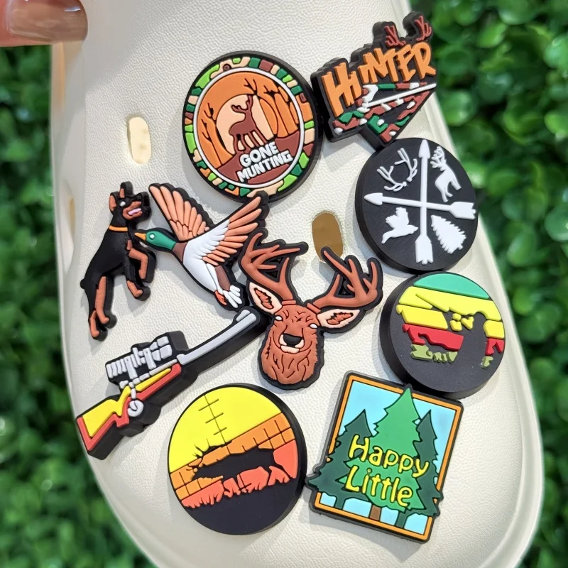 1-10Pcs Deer Gone Munting PVC Shoe Charms Gun Hunter Garden Clog Buckle Decorations For Kids Holiday Present