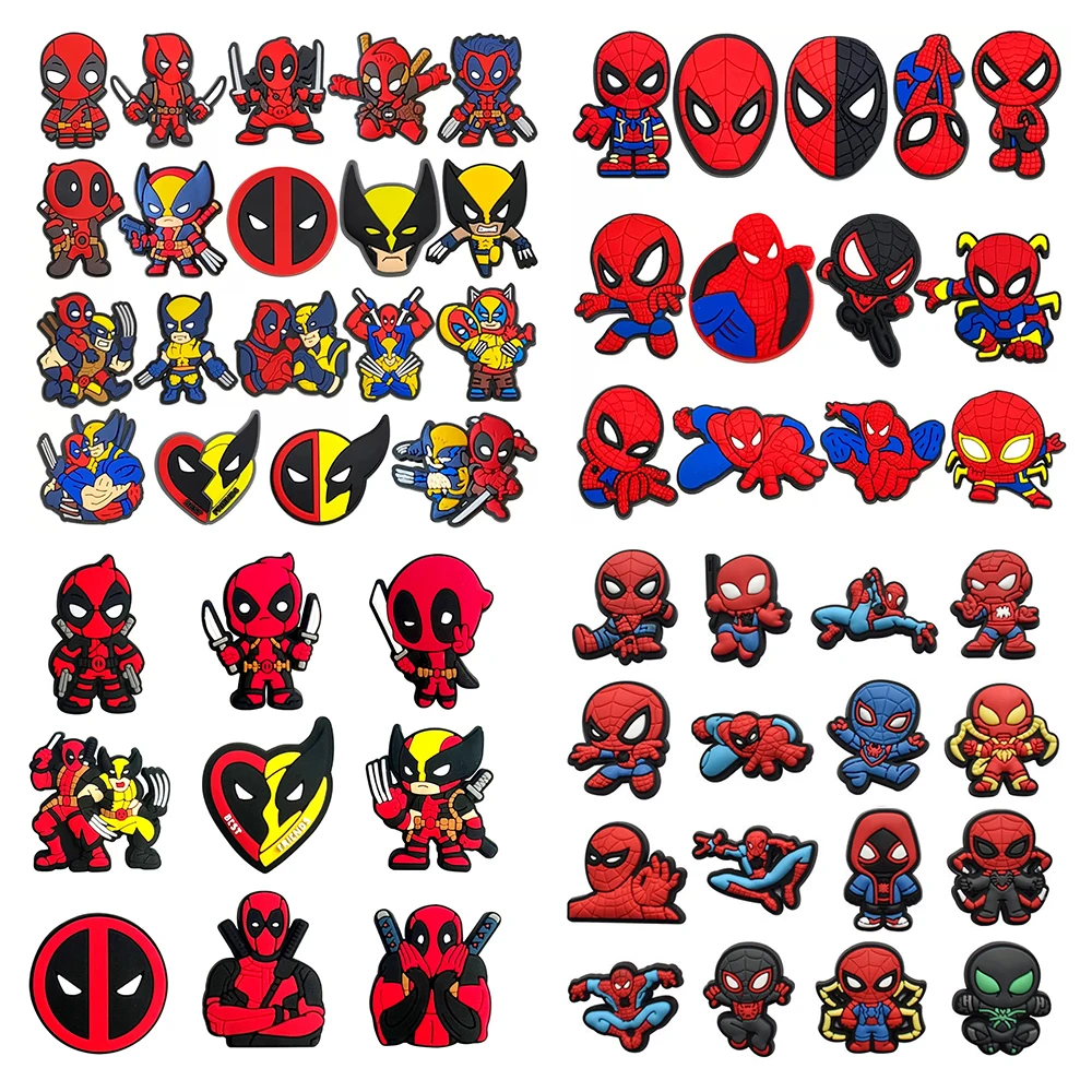 9-57pcs MINISO Cartoon Deadpool Wolverine Shoe Charms Spider-Man Shoes Accessories Buckle fit Clogs Sandals Decorate Kids Gifts
