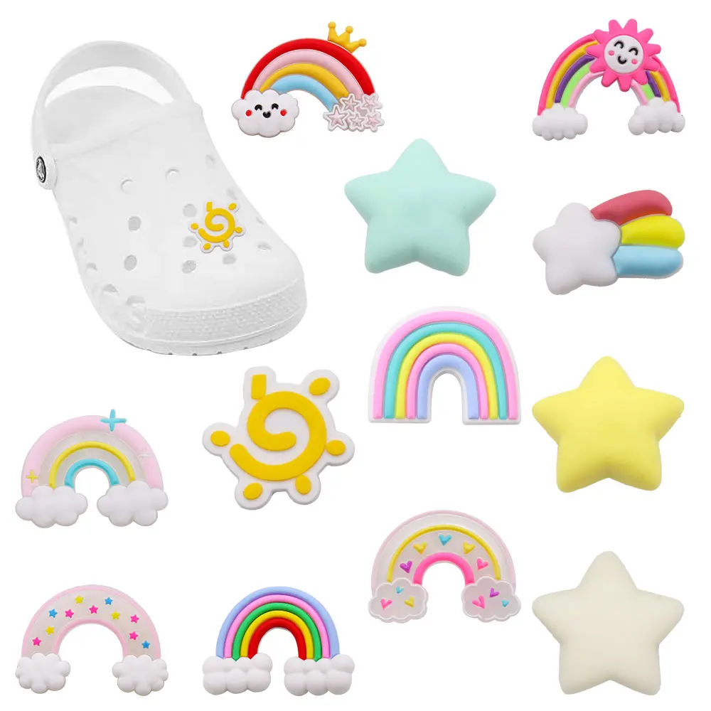 New Arrival 1-12pcs PVC Shoe Charms Cute Star Sun Rainbow Clouds Accessories Sandals Shoes Buckles Fit Kids Party Present