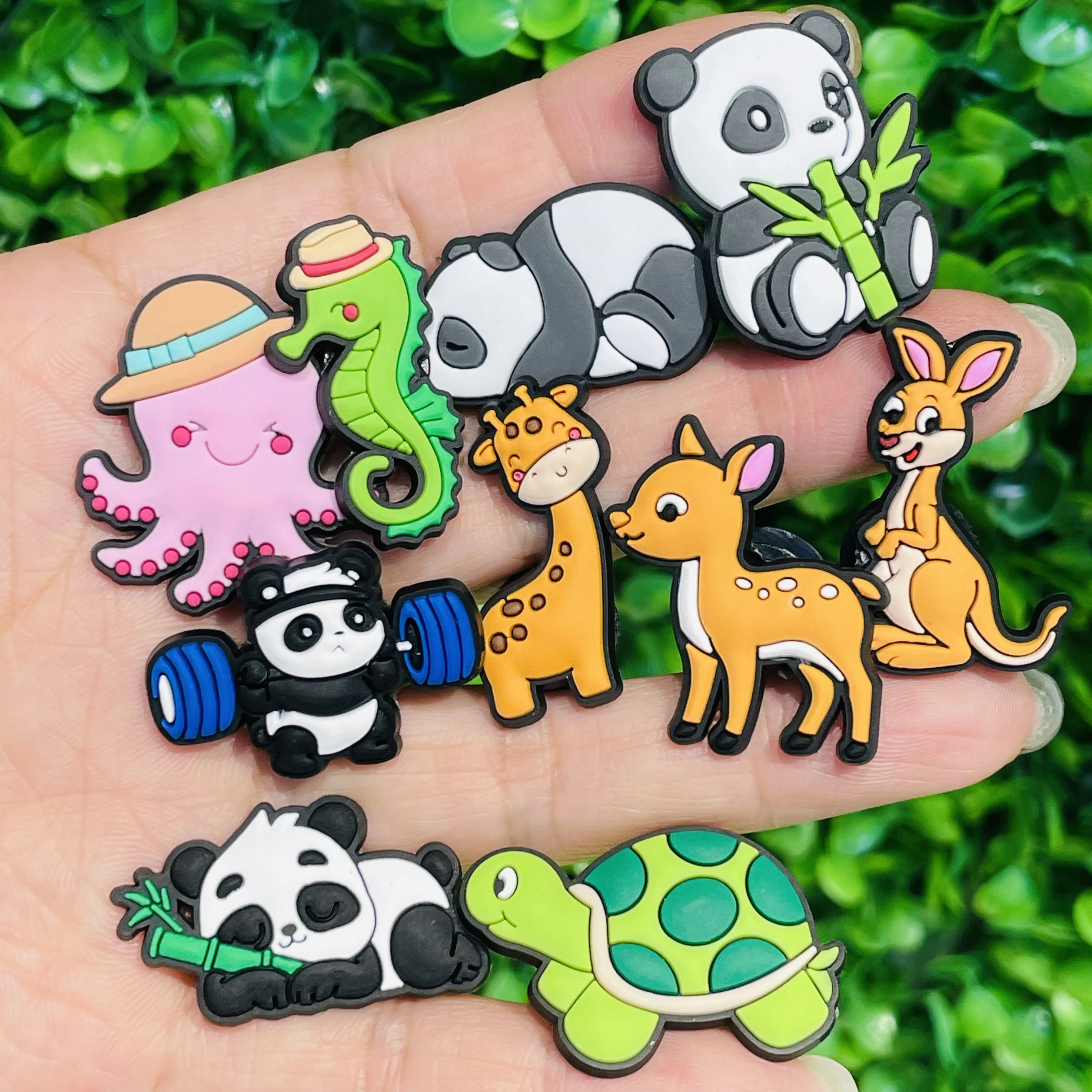 1-10pcs Animals Panda Giraffe Turtle Shoe Charms DIY Sandals Accessories Buckle PVC Shoes Ornament For Woman Kids Party Gift