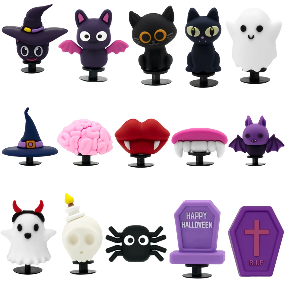 1/15pcs 3D Halloween Party Horrible Shoe Accessories Black Cat Ghost Witch Shoe Charms Woman Men Kids Pins Buckle Decorations
