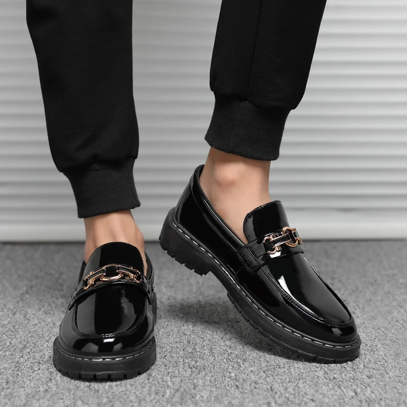 Spring and Autumn Horse Buckle Bright Men's Lok Fu Shoes Black work shoes Fashion Gentleman's Shoes Leisure Student Shoes
