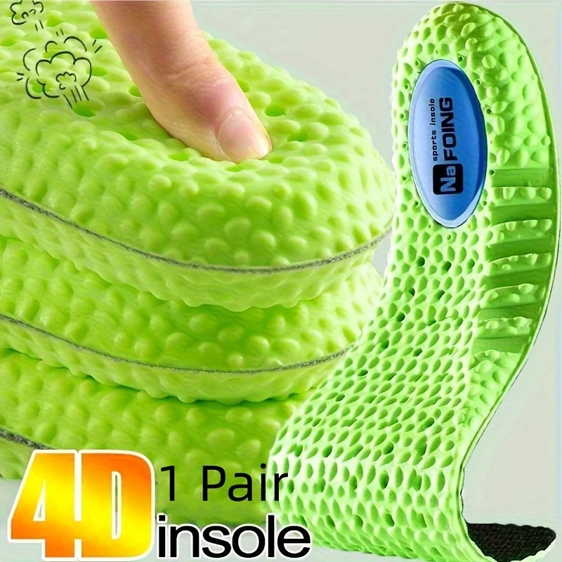 2Pairs Green 4D Cloud Sport Insoles for Shoes PU Air Cushion Sole Soft Shock Absorption Deodorant Breathable Orthopedic Insoles  Read more