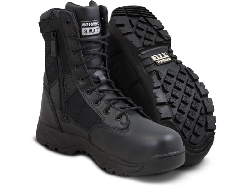 Original S.W.A.T. Classic 9in Waterproof Side Zip CST Boots 5.5 Black 129101-5.5-R. W.A.T. Composite Safety Toe and a steel shank riveted to the Texon board undersole. These Original SWAT boots feature an arched ladder tread that gives police and...  Read more
