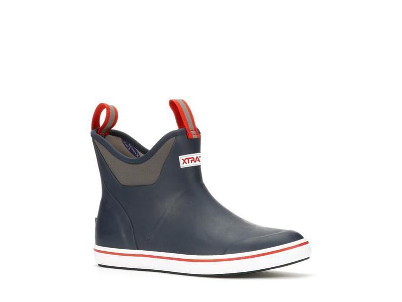 Xtratuf 6 in Ankle Deck Boots - Men's Navy/Red 11 22733-NVY-110. Xtratuf crafted these Men's Footwear with a slip-resistant Chevron outsole that provides superior traction on even the slipperiest docks. Xtratuf Men's 6in Ankle-Height Deck Boots are...  Read more